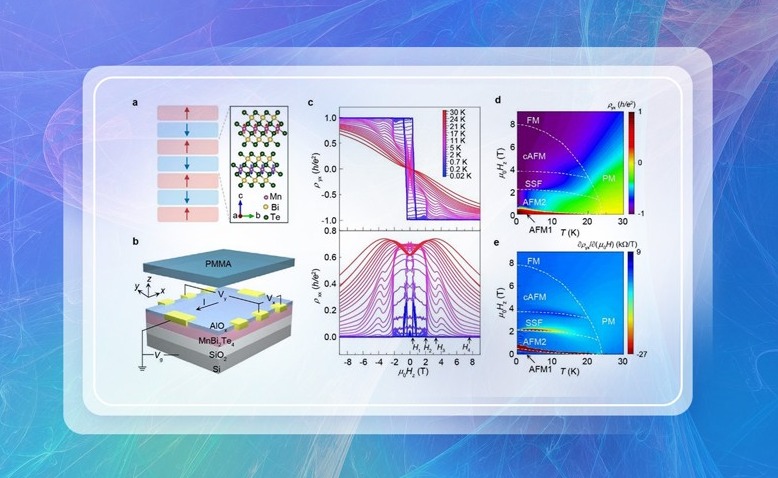过去五年间心博在线登录入口物理系王亚愚、张金松团队与合作者持续对MnBi2Te4体系进行深入研究,特别是将氧化铝薄膜引入器件制备的微纳加工流程,极大提升了器件质量和可重复性,从而可以在较大的参数空间系统研究反铁磁自旋构型对量子反常霍尔效应的调制。相关研...