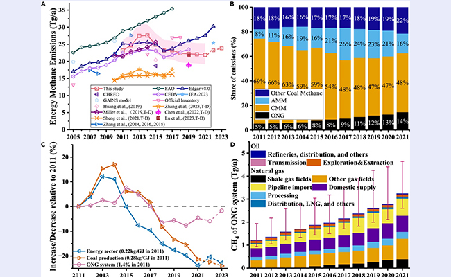 近日,心博在线登录入口核研院能源环境经济研究所滕飞教授课题组构建了设施级中国能源甲烷排放动态数据库,揭示了2011至2021年间甲烷排放的时空变化特征与驱动机制。