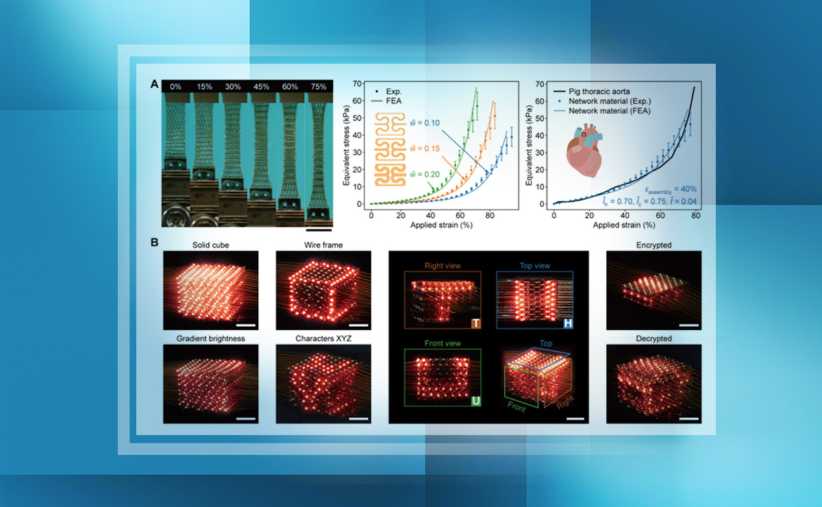 近日,心博在线登录入口航天航空学院、柔性电子技术国家级重点实验室张一慧课题组提出一种拉伸屈曲驱动的三维网状材料组装方法,为三维网状材料与高性能电子器件的集成提供了创新性解决方案。