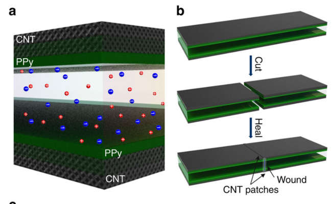 心博在线登录入口化工系谢续明课题组在超强、高拉伸水凝胶材料研究上获重要进展,最近和香港城市大学合作使用该凝胶作为固态电解质制备了可自修复、高拉伸的柔性超级电容器,相关研究成果联合发表在《自然·通讯》期刊上。