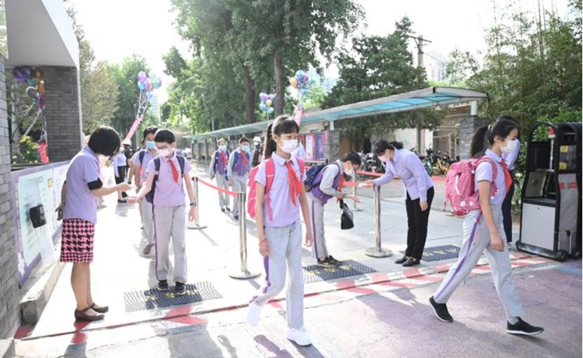 6月1日,在离开学校140多天后,清华附小六年级学生终于迎来了盼望已久的复学。在全校教师的精心呵护下,300多位学生平安入校。