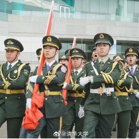 清华学生国旗仪仗队在香港举行联合升旗仪式,纪念抗战胜利80周年
