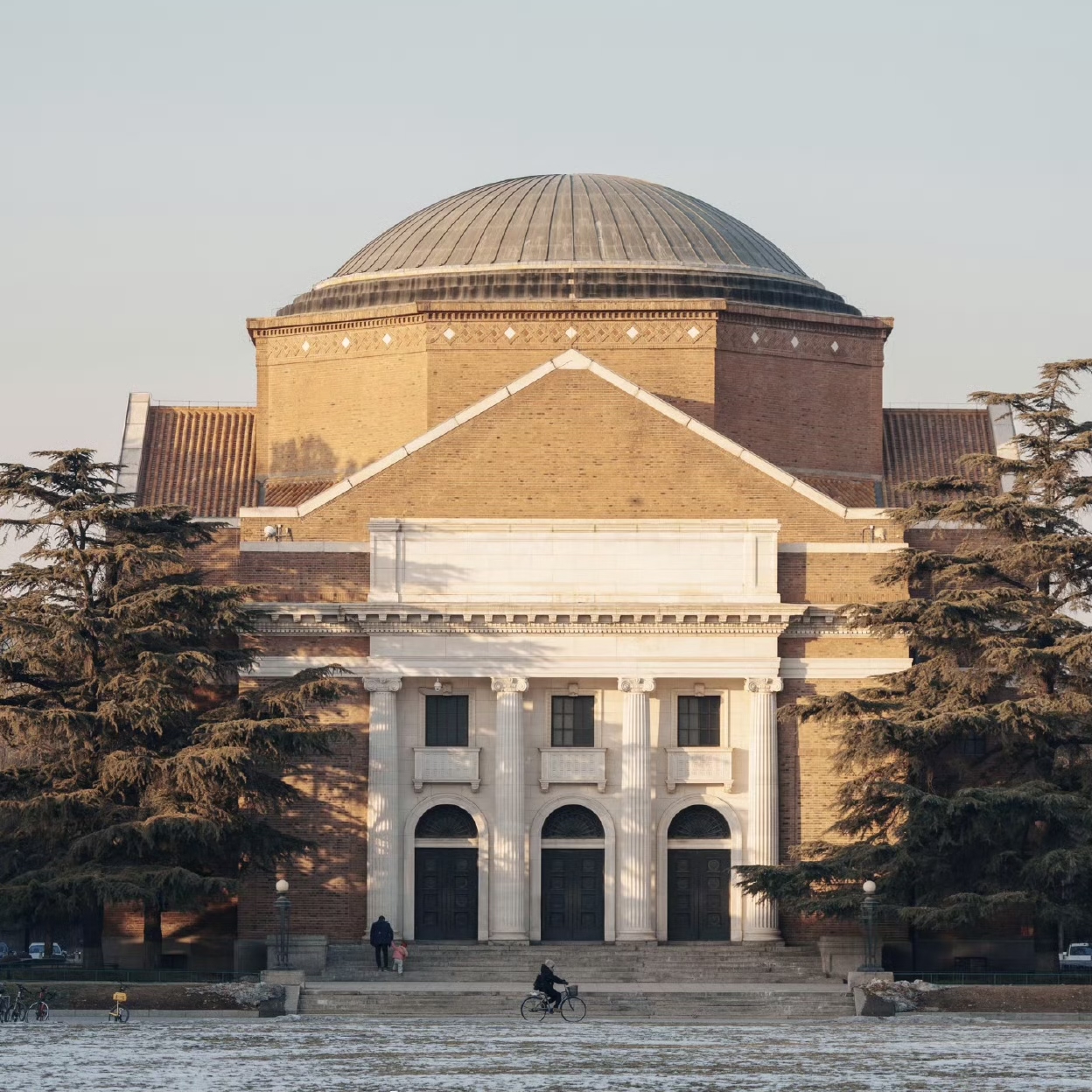 寒冬午后,柔和的阳光斜射在脸上,白云轻柔淡薄如羽翼,映衬着古朴的清华园。