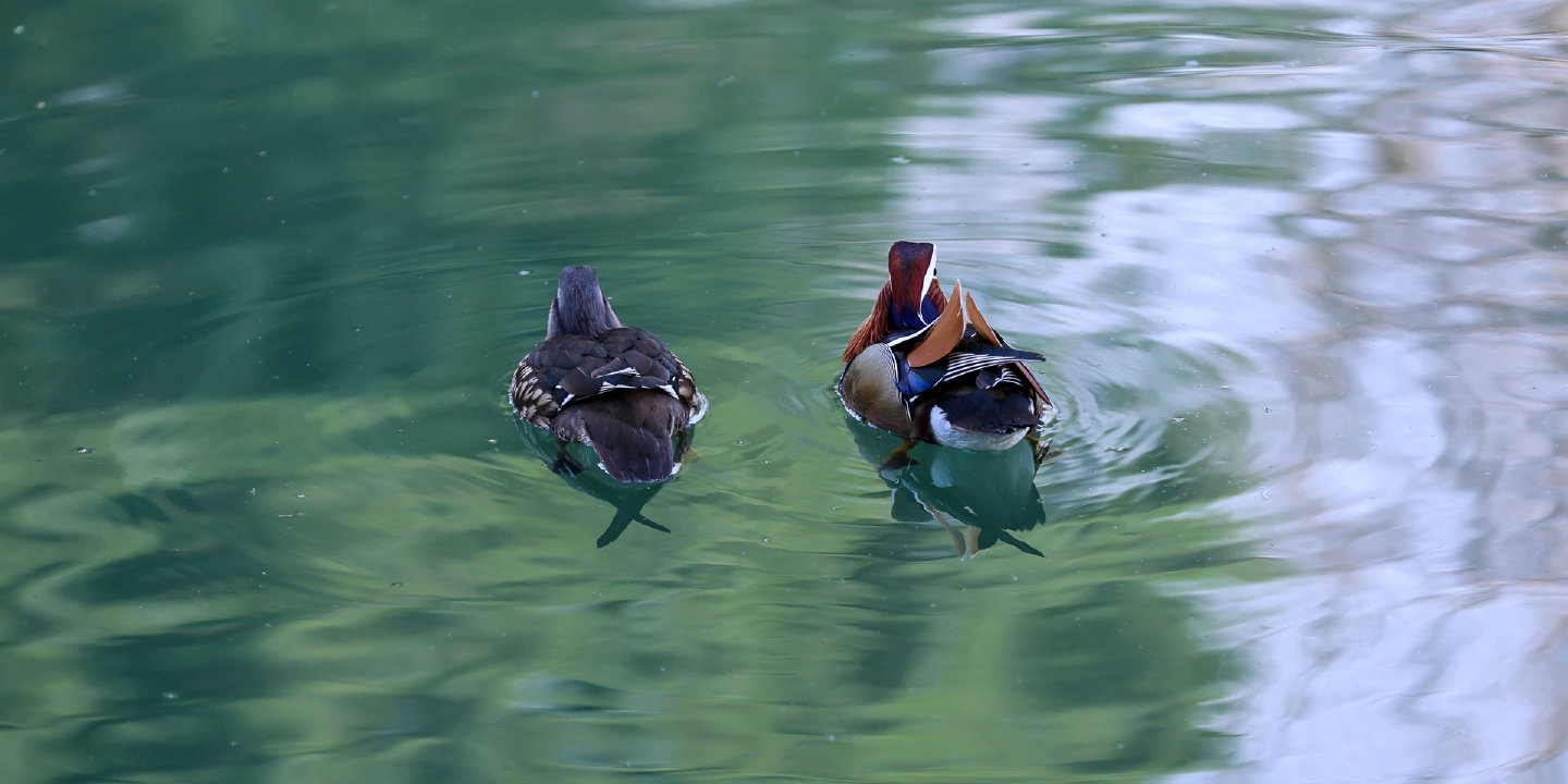 黑天鹅悠然游弋,与波光粼粼的水面相映成趣