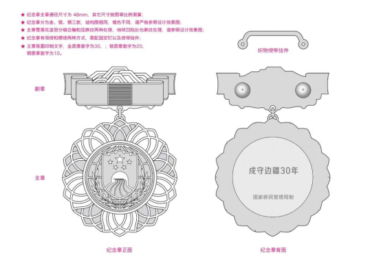 这套纪念章由清华美院陈磊老师带领研究生秦玉娴、胡晓雯创作设计完成,设计工作历时逾半年,团队经过十数稿的修改调整,认真推敲每一处细节,不断优化,追求完美,最终设计方案得到了国家移民管理局领导和广大民警的肯定。