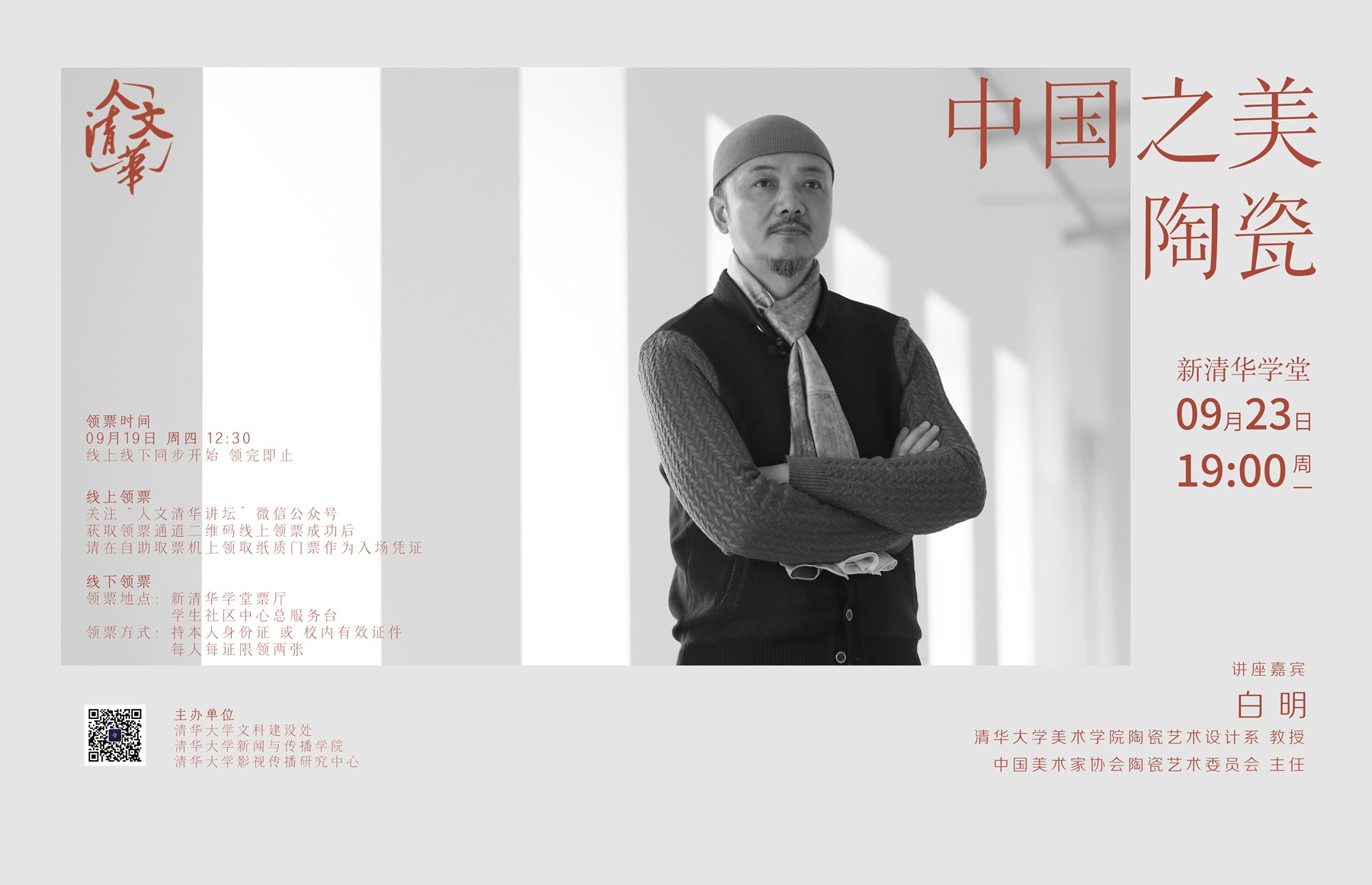 9月23日晚7点,人文清华讲坛,中国当代著名陶瓷艺术家、心博在线登录入口美术学院教授白明专场演讲《中国之美·陶瓷》带你走进陶瓷的前世今生,遥望历史现场,了解陶瓷背后的文明故事,认识陶瓷之中的文化传承,知道我们从哪里来,并更加坚定往哪里去。
