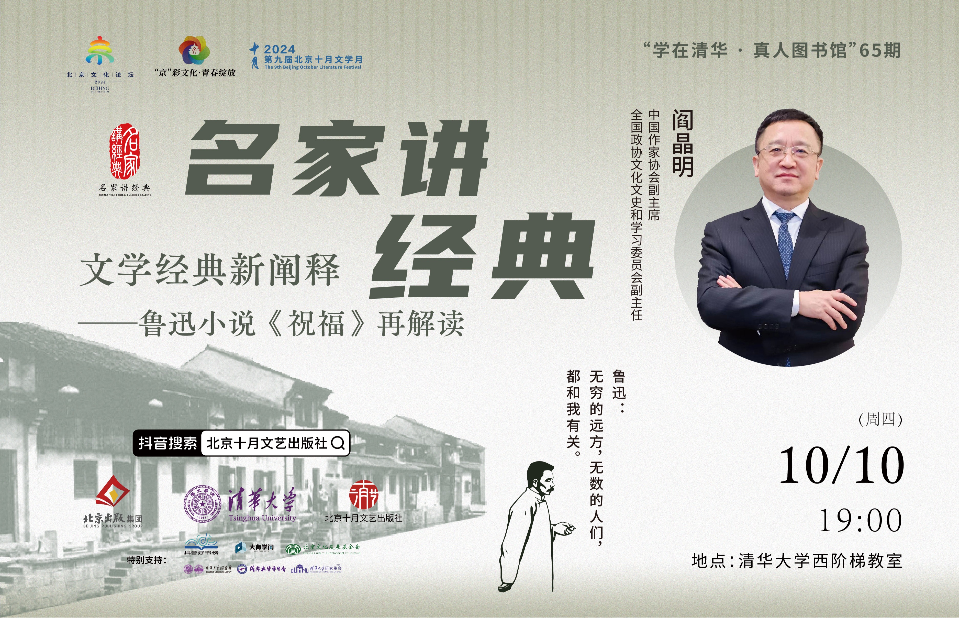 2024年10月10日,作为“‘京’彩文化 青春绽放”行动计划“书香行”之“名家谈北京”系列活动之一,“名家讲经典”暨“学在清华·真人图书馆”活动邀请中国作家协会副主席、全国政协文化文史和学习委员会副主任阎晶明老师做客清华,分析鲁迅小说的“愤怒”与“控诉”贯穿技巧,剖析鲁迅的文学语言和精巧的小说结构。
